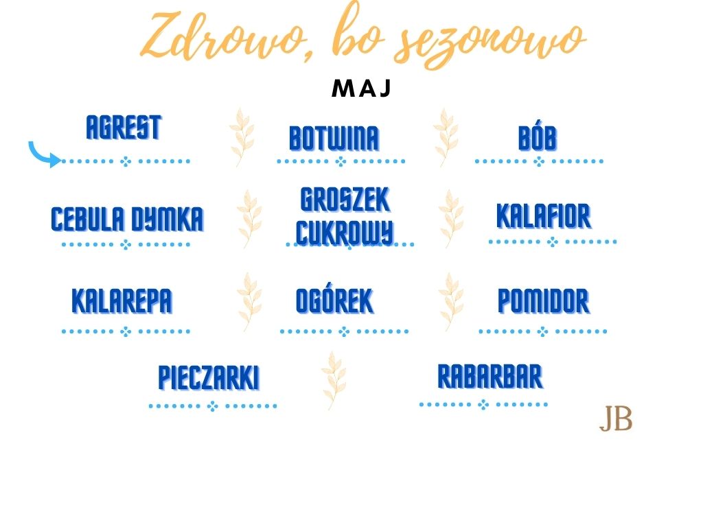 Chłodny maj – dobry urodzaj. Oby spełniło się to polskie porzekadło, bo pogoda nas ciągle nie rozpieszcza, aura jakby jesienna i powoli tracimy nadzieję, że kiedyś będzie ciepło. (Może to dlatego, że nikt z nas już nie topi Marzanny???). Kalendarz sezonowości warzyw i owoców na maj sugeruje nam coś zupełnie innego.