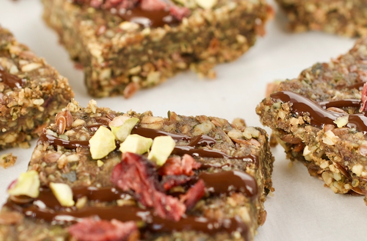 Przez ostatnie miesiące intensywnie wykańczałam przepisy do kolejnej książki. Efekt moich zmagań kuchennych pod tytułem Zamień chemię na energię. Zdrowie i siła na wynos pojawi się już 1. sierpnia w księgarniach. A dziś przedstawiam Wam jeden z moich ulubionych przepisów na zdrowe desery, pochodzący z najnowszej książki. Batoniki te w doskonały sposób łączą w sobie walory zdrowotne (pestki, ziarna, bakalie) i smakowe (są pyszne, choć nie zawierają cukru). Do tego mają zwartą konsystencję, dlatego można je zabrać ze sobą do pracy, szkoły, na wycieczkę. Nadają się też do mrożenia.